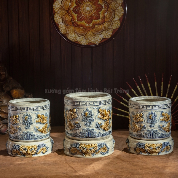 BÁT HƯƠNG MEN RẠN ĐẮP NỔI HỌA TIẾT RỒNG CHẦU NGUYỆT