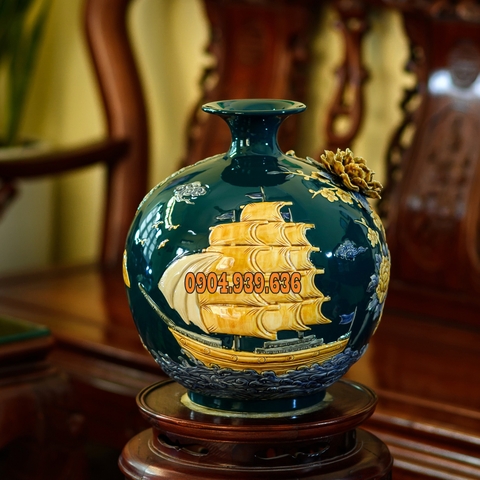 Bình hút Tài Lộc đắp nổi THUẬN BUỒM XUÔI GIÓ - GỐM SỨ BÁT TRÀNG - 22cm