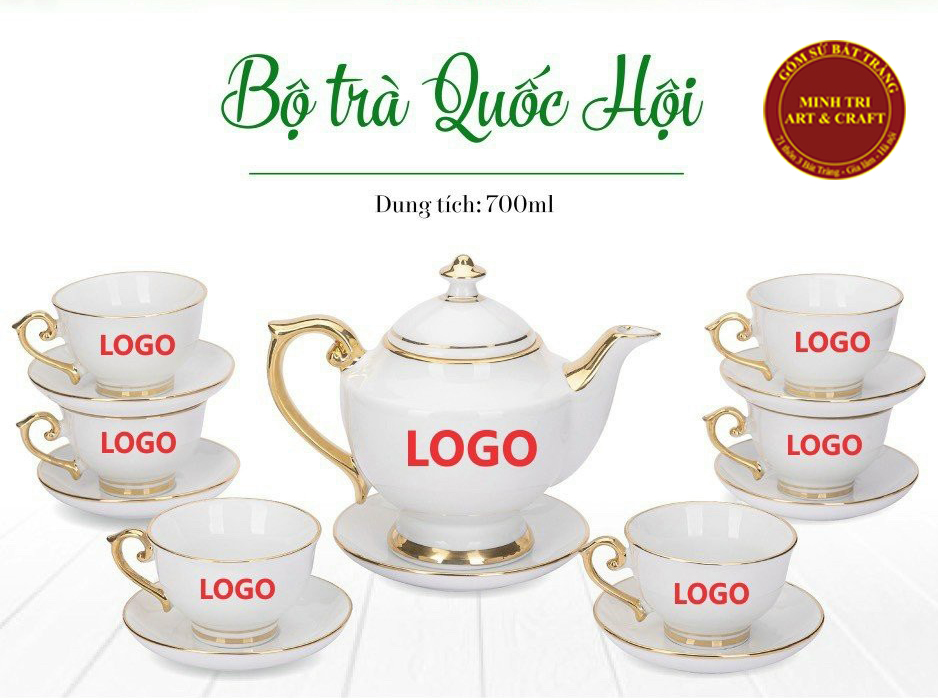 Bộ ấm chén Quốc Hội kẻ chỉ Vàng dung tích 700ML - Quà tặng gốm sứ Bát Tràng