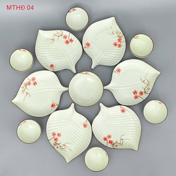 Bộ hoa mặt trời men kem vẽ hoa đào Size 4 - gốm sứ Bát Tràng cao cấp