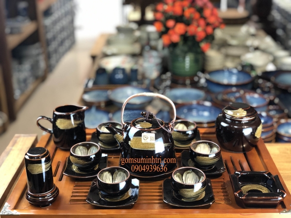 Bộ sản phẩm ấm chén gốm Bát Tràng, sản phẩm được nung ở nhiệt 1280 độ c, loại bỏ hoàn toàn tạp chất, an toàn cho người sử dụng .