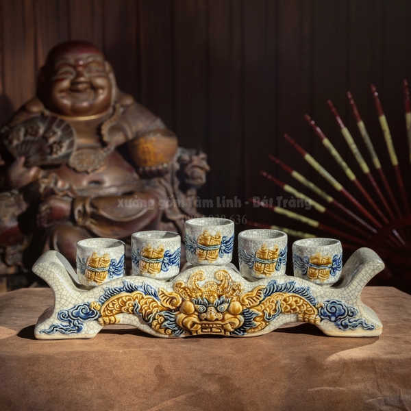Kỷ ngai 5 rồng men rạn đắp nổi men rạn Bát Tràng