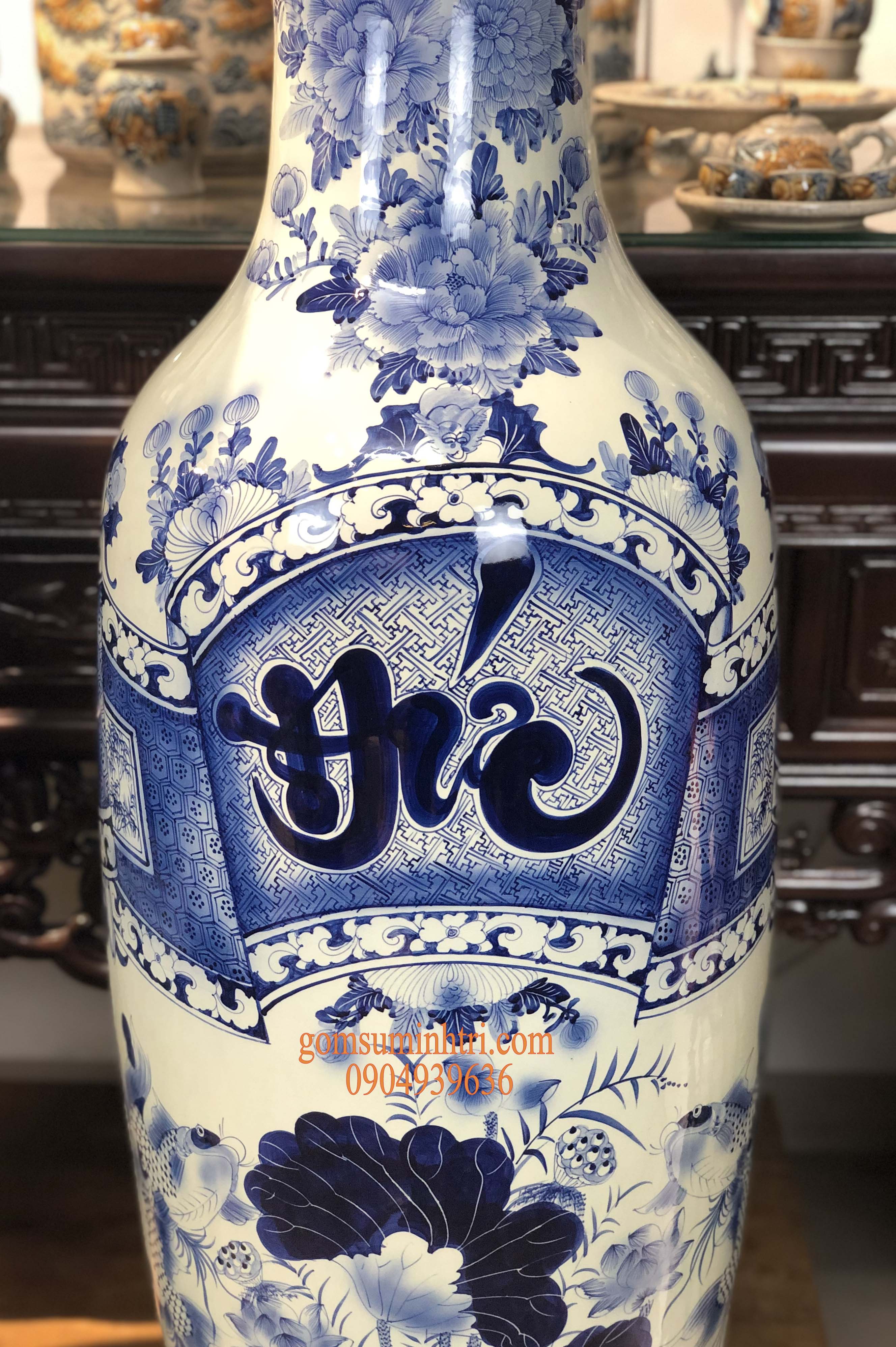Lộc bình Phúc Đức 1.55cm Gốm sứ Bát Tràng cao cấp