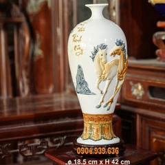Mai Bình Tụ Lộc đắp nổi men màu Trắng - MÃ ĐÁO THÀNH CÔNG